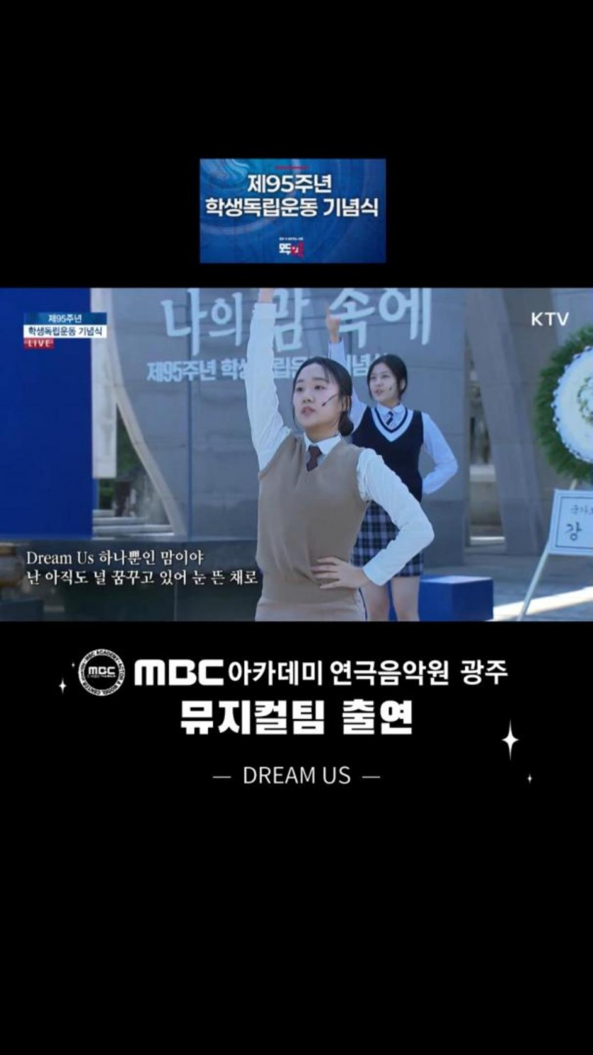 제95주년 학생독립운동 기념식 뮤지컬팀 출연 - DREAM US - 페이지 정보 작성자MBC아카데미연극음악원광주 댓글 0건 조회 2,527회 작성일 24-11-13 20:42 본문 목록 이전글연기센터 강다솜 수강생 영화_바람결 은하 역 데뷔 24.12.04 다음글제95주년 학생독립운동 기념식 뮤지컬팀 출연 - 애국가 선도 - 24.11.08
