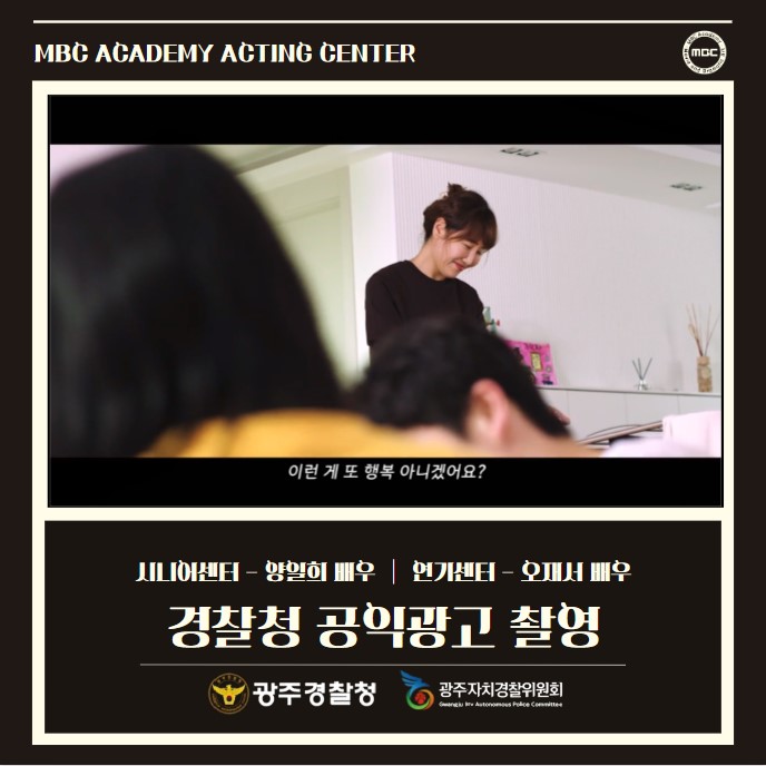 경찰청 공익광고 캐스팅! 페이지 정보 작성자MBC아카데미연극음악원광주 댓글 0건 조회 3,786회 작성일 23-09-19 19:17 본문 목록 이전글인터내셔널 슈퍼퀸 슈퍼스타 키즈모델 콘테스트 대상/은상 수상! 23.09.20 다음글3.8 민주의거 기념 행사 [민주가 있는 날, 민주 HI-HIGH] 23.06.14