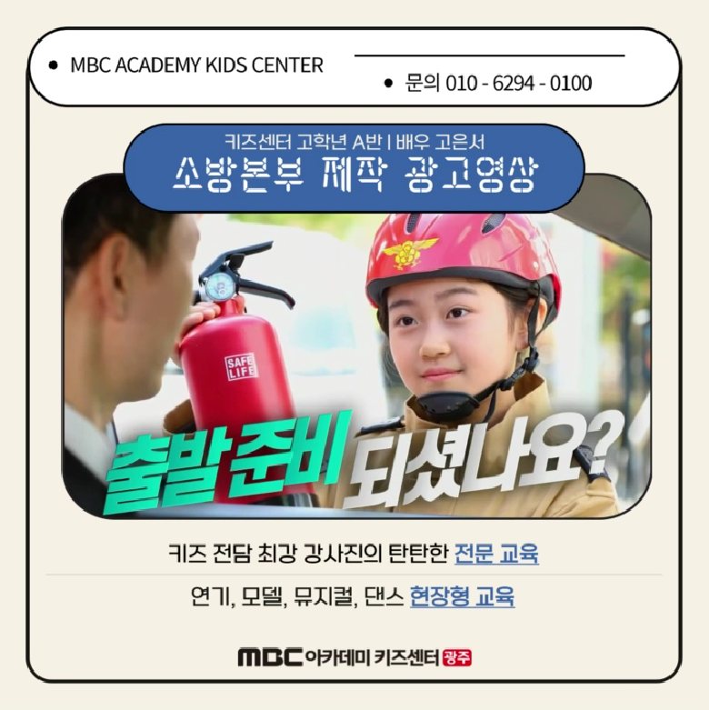 [키즈센터] 소방본부 제작 광고 촬영! 페이지 정보 작성자MBC아카데미연극음악원광주 댓글 0건 조회 3,655회 작성일 23-10-03 18:37 본문 목록 이전글[키즈센터] "고은서" SBS 모닝와이드 촬영! 23.10.25 다음글인터내셔널 슈퍼퀸 슈퍼스타 키즈모델 콘테스트 대상/은상 수상! 23.09.20