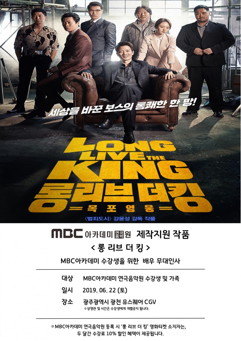 MBC아카데미 제작지원 영화 '롱 리브 더 킹' 수강생 시사회 페이지 정보 작성자 관리자 댓글 0건 조회 32,495회 작성일 19-06-19 20:42 본문 MBC아카데미 제작지원 영화 '롱 리브 더 킹' 수강생 시사회 목록 이전글 [모델센터] 11기 모델캠프 19.06.28 다음글 [연기센터] 모델연기반 개강 19.05.21