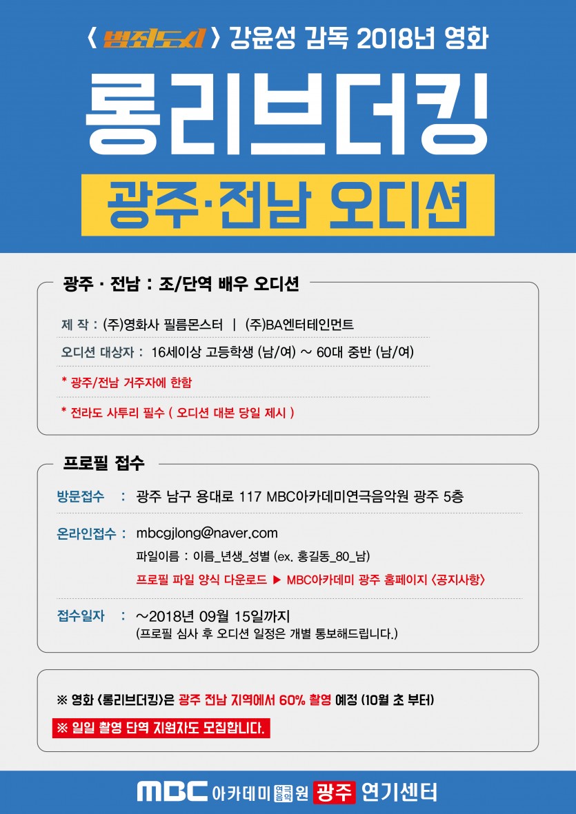 <범죄도시> 강윤성 감독 2018년영화 - 롱리브더킹 광주,전남 오디션