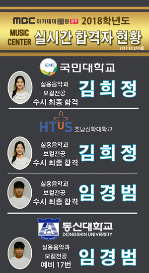 [뮤직센터] 2018학년도 수시합격자 현황 페이지 정보 작성자 관리자 댓글 0건 조회 32,030회 작성일 17-11-29 20:03 본문 2018학년도 수시합격자 현황 목록 이전글 [모델센터] 2018학년도 수시합격자 현황 17.11.29 다음글 [드라마센터] 2018학년도 수시합격자 현황 17.11.29