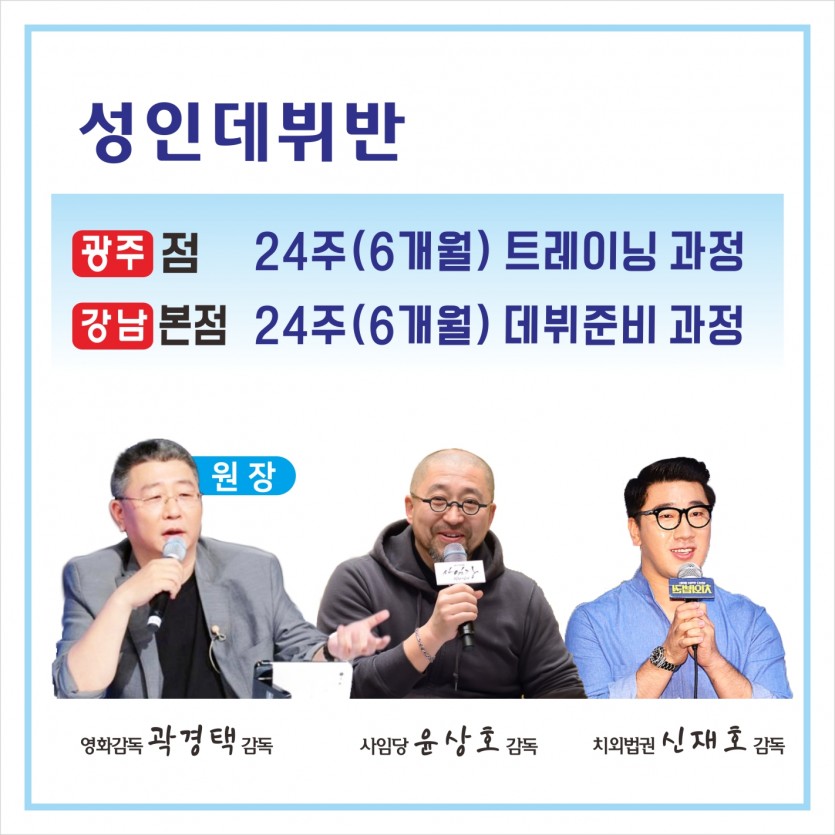[드라마센터] 성인데뷔반 모집 이벤트 페이지 정보 작성자 관리자 댓글 0건 조회 30,760회 작성일 17-05-01 19:46 본문 성인데뷔반 모집 이벤트 5/1 ~ 5/31 목록 이전글 [드라마센터] 주말종합연기반 모집 17.05.02 다음글 MBC아카데미연극음악원[광주] 꿈길 "꿈꾸는 아이들의 길라잡이" 17.04.25