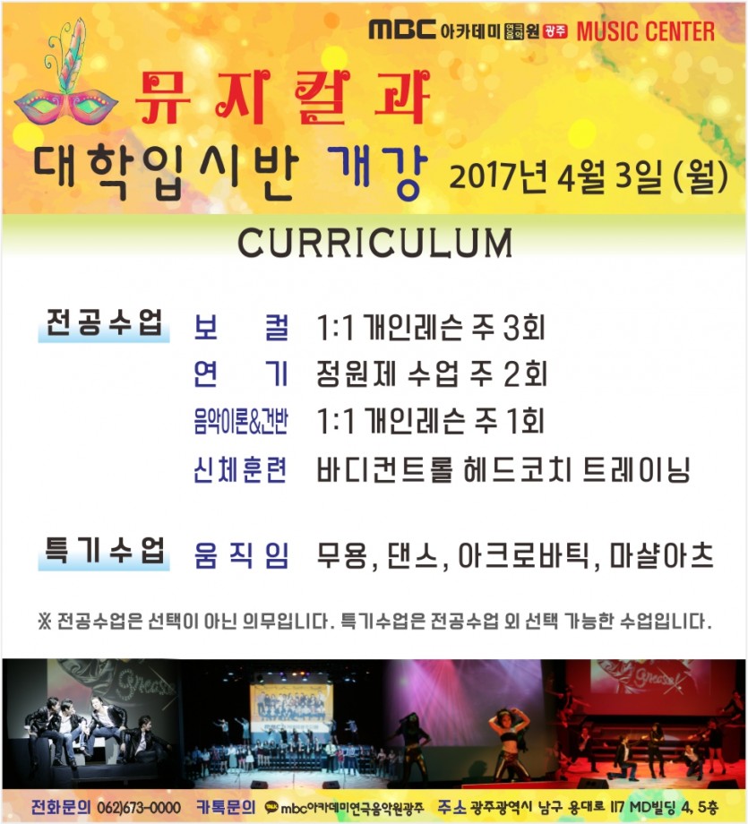 [뮤직센터] 뮤지컬과 대학입시반 개강 페이지 정보 작성자 관리자 댓글 0건 조회 30,325회 작성일 17-03-13 21:06 본문 뮤지컬과 대학입시반 개강 목록 이전글 [뮤직센터] 실용보컬/싱어송라이터 대학입시반 개강 17.03.13 다음글 [뮤직센터]피아노 반주! 5주 완성! 나도 할 수 있다! 17.03.10