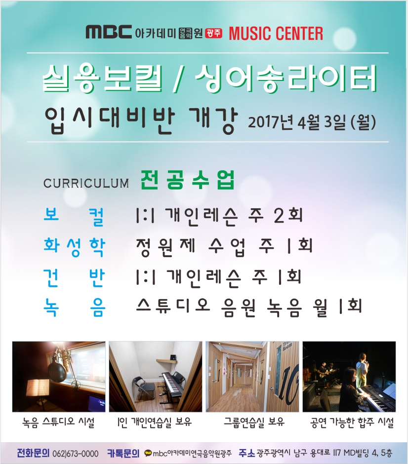 [뮤직센터] 실용보컬-입시대비반 페이지 정보 작성자 관리자 댓글 0건 조회 30,892회 작성일 17-03-16 12:28 본문 실용보컬-입시대비반 개강! 목록 이전글 [드라마센터] 성인데뷔반 단편영화 ING 시사회 17.03.21 다음글 [뮤직센터] 뮤지컬과 - 입시대비반 17.03.16