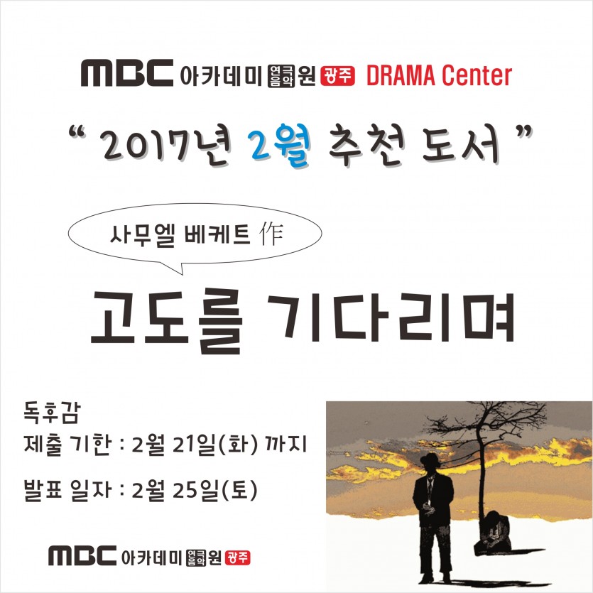2월 추천도서 "고도를 기다리며" 페이지 정보 작성자 관리자 댓글 0건 조회 30,161회 작성일 17-02-06 20:43 본문 독후감 제출 기한 : 2월 21일(화) 까지 발표 일자 : 2월 25일(토) 목록 이전글 재입시반 개강!!!! 17.02.14 다음글 [뮤직센터]프렌쉽위크-싱어송라이터 17.01.20