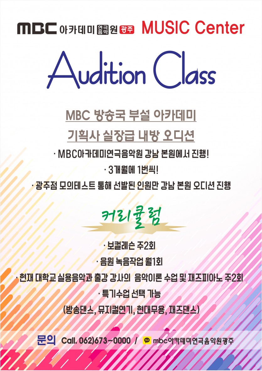 [뮤직센터]오디션반 수강생 모집 페이지 정보 작성자 관리자 댓글 0건 조회 29,968회 작성일 16-11-18 20:08 본문 오디션반 수강생 모집 목록 이전글 [뮤직센터]싱어송라이터가 꿈이라구요? 16.11.29 다음글 [드라마센터] 제4회정기공연 "안네의일기" 광주문화관광책자 "문화마실"에 실리다. 16.10.26