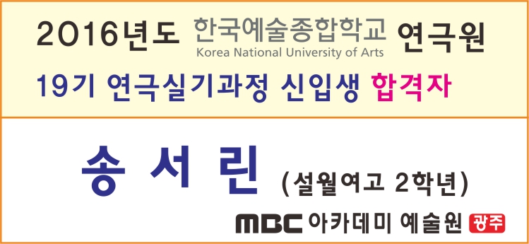 한예종 연극원 19기 연극실기과정 신입생 합격자 페이지 정보 작성자 관리자 댓글 0건 조회 29,479회 작성일 15-11-27 22:38 본문 한예종 연극원 19기 연극실기과정 신입생 합격자 목록 이전글 2016학년도 실시간 합격자 현황 [백석예대] 15.12.09 다음글 2016학년도 실시간 합격자 현황 [계원예고] 15.11.16