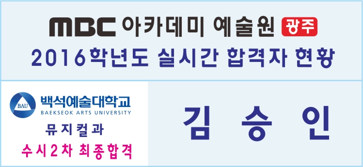 2016학년도 실시간 합격자 현황 [백석예대] 페이지 정보 작성자 관리자 댓글 0건 조회 29,135회 작성일 15-12-09 21:57 본문 2016학년도 실시간 합격자 현황 [백석예대] 목록 이전글 2016학년도 실시간 합격자 현황 [군장대] 15.12.15 다음글 한예종 연극원 19기 연극실기과정 신입생 합격자 15.11.27