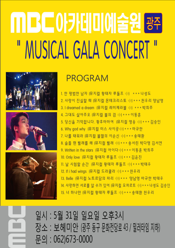 MUSICAL GALA CONCERT 페이지 정보 작성자 관리자 댓글 0건 조회 27,660회 작성일 15-05-15 15:03 본문 MUSICAL GALA CONCERT 목록 이전글 6월 실기 모의고사 실기 요강 15.06.25 다음글 ★ 2015 예술원[광주] 춘계 워크샵 ★ 15.04.06
