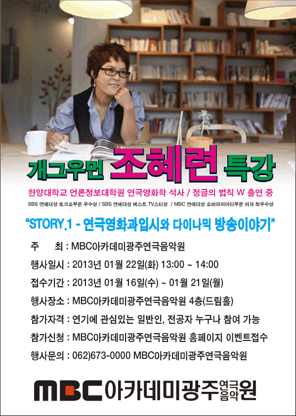 특강을 MBC아카데미광주연극음악원에서 주최합니다.