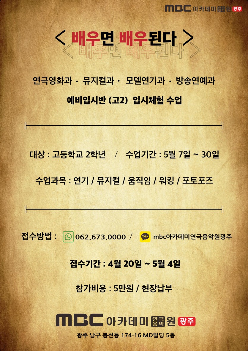 예비입시반 입시체험 수업 페이지 정보 작성자 관리자 댓글 0건 조회 25,897회 작성일 19-04-23 22:39 본문 예비입시반 입시체험 수업 목록 이전글 롱 리브 더 킹 - MBC아카데미연극음악원 제작지원 시사회 19.06.20 다음글 모델연기 입시체험캠프 1기 19.04.06