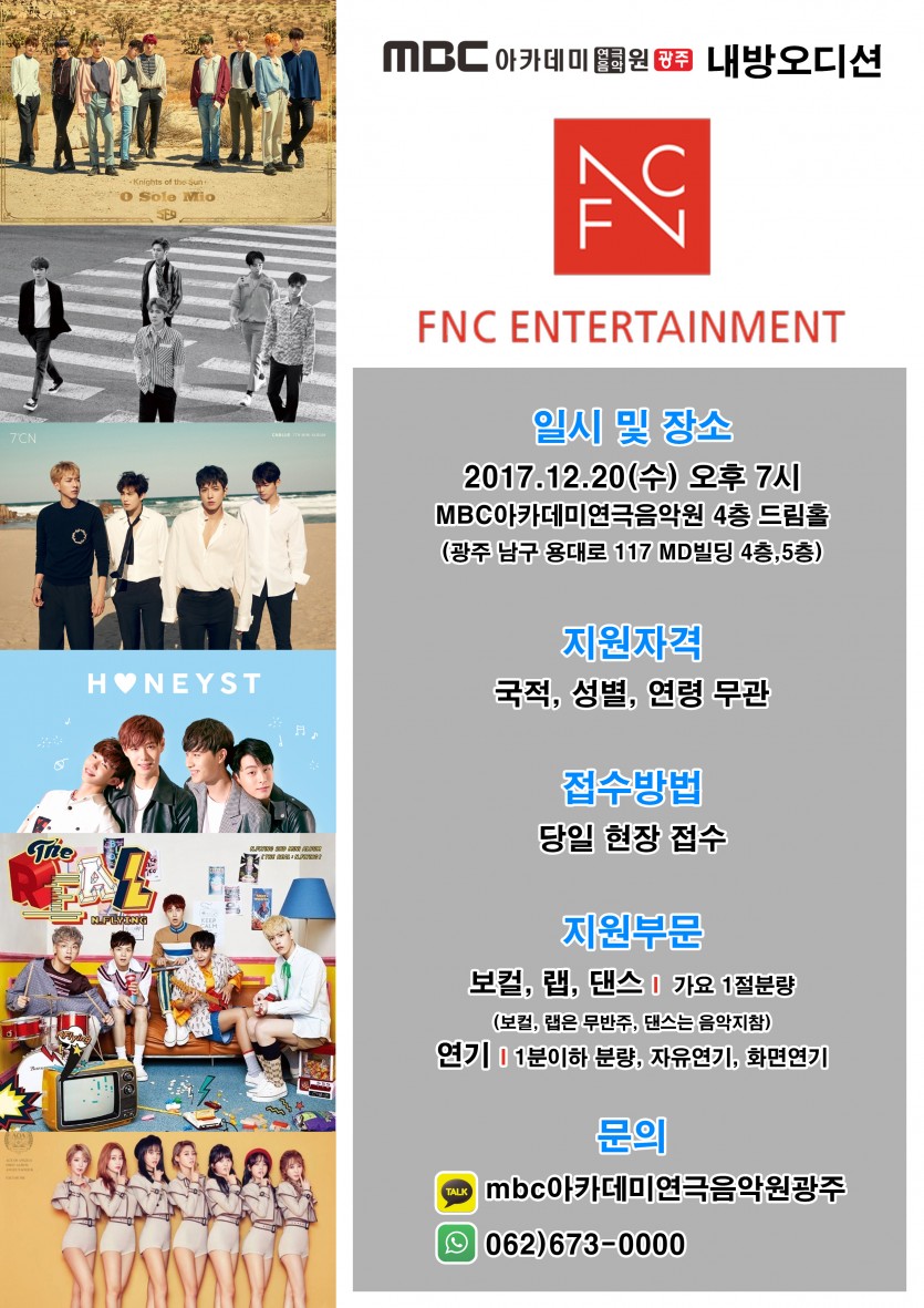 FNC엔터테인먼트 오디션 페이지 정보 작성자 관리자 댓글 0건 조회 24,890회 작성일 17-12-14 21:16 본문 FNC 엔터테이먼트 오디션이 진행됩니다 목록 이전글 2018학년도 정시를 위한 드라마센터 속성 맞춤형 특강 17.12.16 다음글 페이브 엔터테이먼트 내방오디션 17.12.08