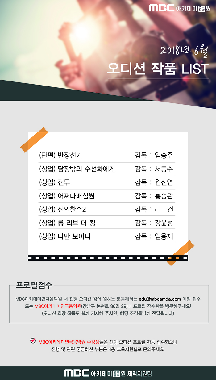 6월 오디션 작품 LIST 입니다.
