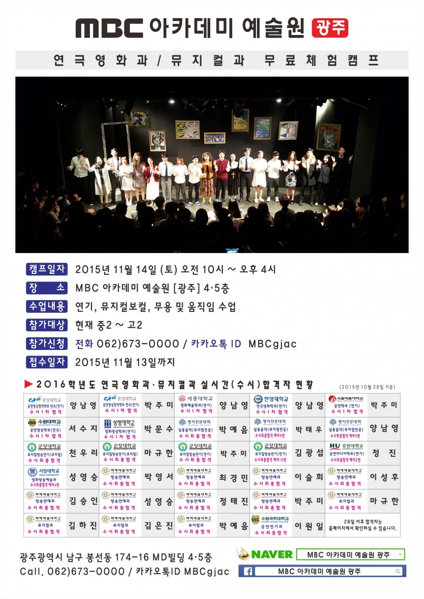 연극영화과 / 뮤지컬과 무료 체험캠프 페이지 정보 작성자 관리자 댓글 0건 조회 23,770회 작성일 15-10-29 15:31 본문 연극영화과 / 뮤지컬과 무료 체험캠프 목록 이전글 실용보컬/뮤지컬 무료체험캠프 15.12.03 다음글 실용보컬/실용뮤지컬 체험캠프 15.10.02