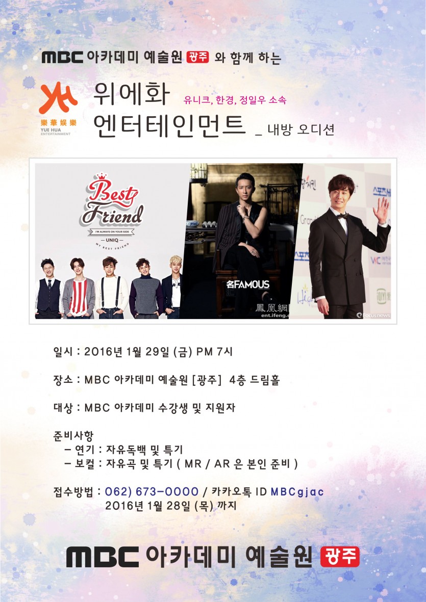 위에화 오디션 페이지 정보 작성자 관리자 댓글 0건 조회 23,621회 작성일 16-01-23 16:39 본문 위에화 오디션에 도전하세요!!!^^ 목록 이전글 뮤직센터 SPRING VACATION PROJECT 16.02.11 다음글 연극영화과•뮤지컬과 체험 수업 16.01.04